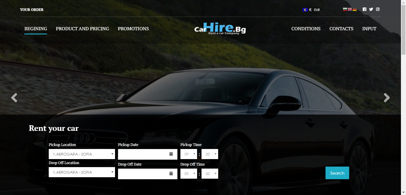 A multilingual car rental website, that allows cars to be scheduled and rented online.